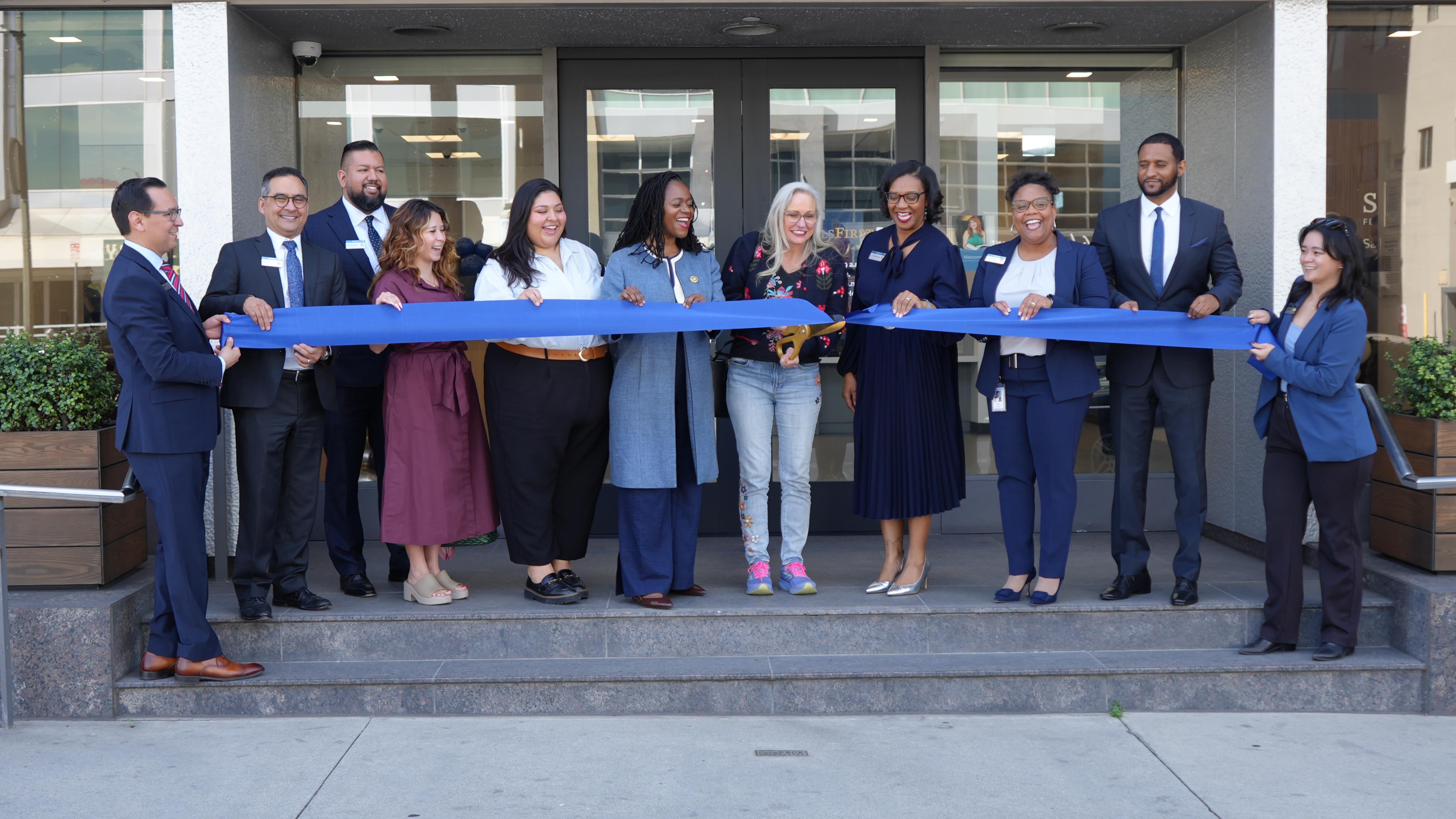 Senator Lola Smallwood Cuevas, Congresswoman Laura Friedman, Karen Calderon from the Office of Assemblymember Isaac Brown, Dr. Amanuel Gebru, president, Los Angeles City College and Irma Gorrocino, legislative advocate at California's Credit Unions presented certificates of recognition to SchoolsFirst FCU leaders and joined in an official ribbon-cutting ceremony.